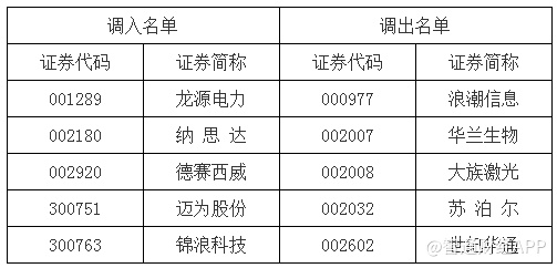 深证100指数调人龙源电力(001289.SZ)、纳思达(002180.SZ)、德赛西威(002920.SZ)等;调出浪潮信息(000977.SZ)、华兰生物(002007.SZ)、大族激光(002008.SZ)等。