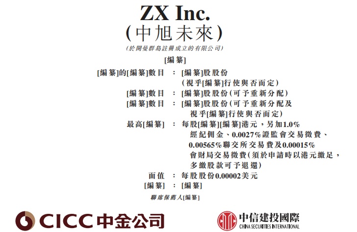 Inc.(中旭未来)向港交所主板提交上市申请,中金公司及中信建投国际为联席保荐人。