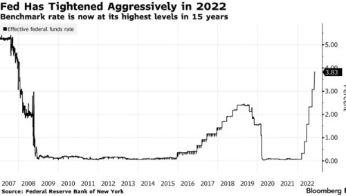 根据期货市场合约定价,市场投资者预计美联储下个月将放缓加息步伐,并预期明年利率水平将从目前的3.75-4.00%升至5%左右的峰值。