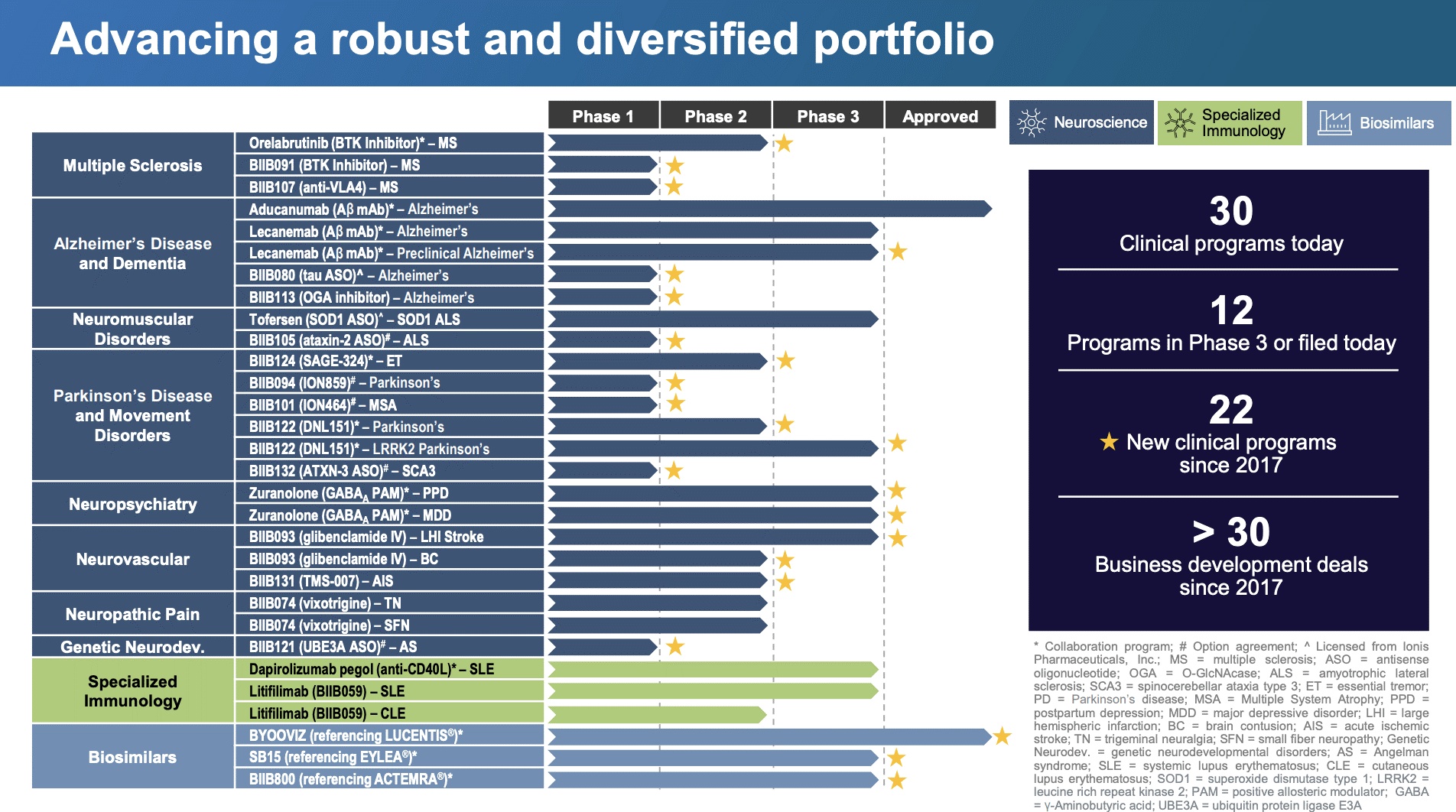 值得一提的是,尽管整个市场的焦点都在Lecanemab上,但百健在包括抑郁症和多发性多发性硬化症在内的其他疾病方面的产品线要多样化得多。截至三季度末,百健有12个项目处于三期试验或已提交监管机构批准,该公司与Sage Therapeutics(SAGE.US)联合研发的用于治疗抑郁症的实验性药物Zuranolone是其中值得关注的对象之一。