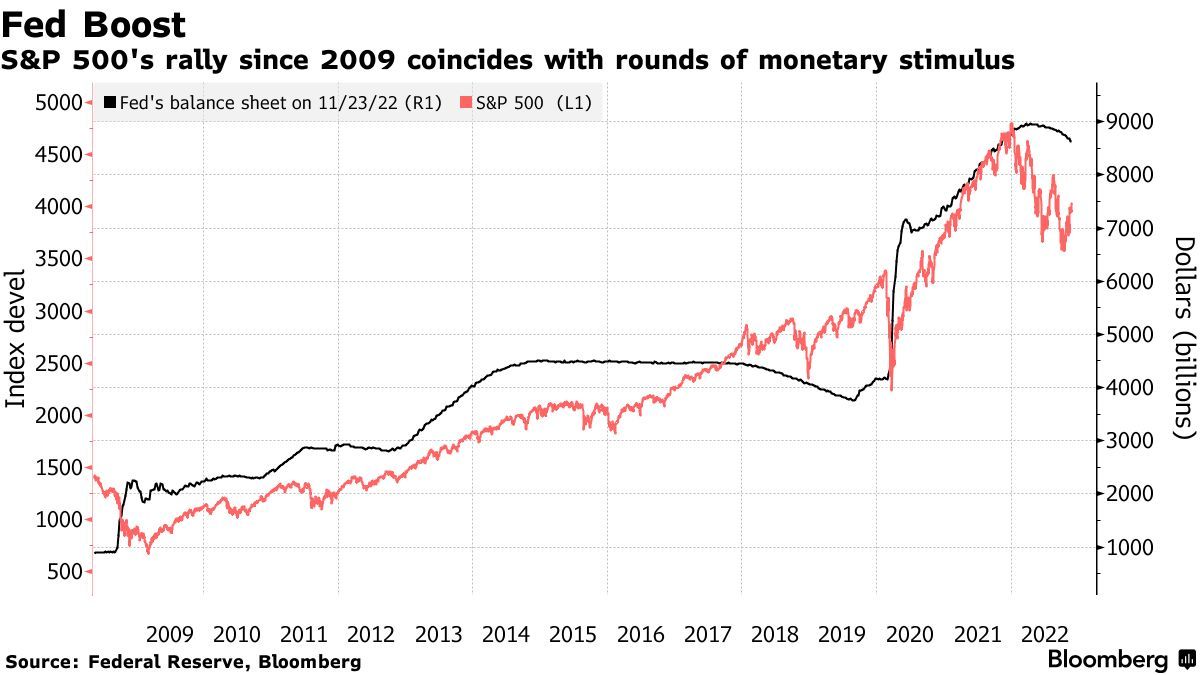 标普500指数自2009年以来的上涨,与美联储出台的几轮货币刺激政策不谋而合