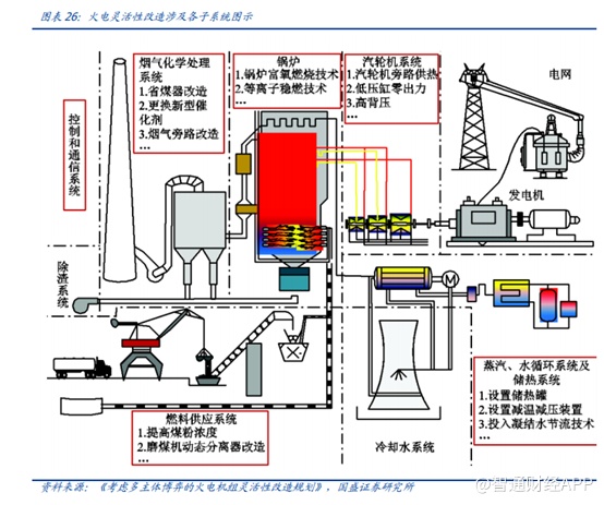 在整个火电灵活性改造的系统中涉及的子系统包括控制和通信系统、锅炉、汽轮机系统、燃料供应系统、冷却水系统等。并且一般电力企业喜欢原锅炉生产商进行灵活性改造,设备参数更加清楚。火电灵活性改造的推行,将带动各子系统的相关企业业绩。