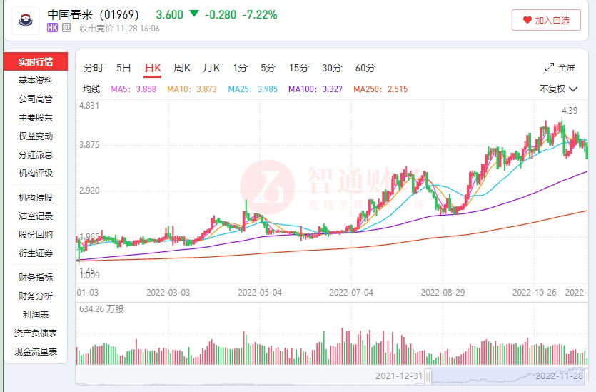 从估值上看,相比于港股同行,中国春来市值处于中等水平,约为43.2亿港元,市盈率(TTM)约为6.88倍,从盘面看,该股成交额近10个交易日有所萎缩,几乎在50-120万港元,活跃度下降。