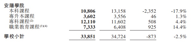 尽管规划很圆满,但中国春来得安阳学院已经出现学生人数减少,尤其是本科生大幅缩水。财报显示,安阳学院位于河南省安阳市。安阳学院的前身是安阳师范学院人文管理学院(人文管理学院),由安阳师范学院与安阳钢铁集团于2003年联合创办。安阳学院目前开设44门本科课程、37门专科课程、23个五年一贯制大专专业及14个中专专业。2021-2022学年,安阳学院的在校生总数为33851人,同比减少873名,本科课程人数减少2352名,同比下降17.9%。关于学生人数下降得原因,公司并未透露。