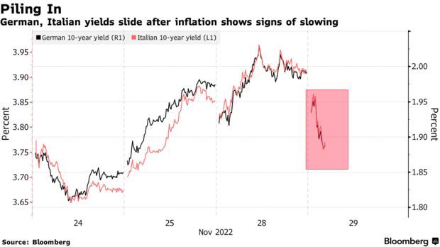 智通财经APP获悉,在数据显示德国和西班牙的通胀可能正在放缓后,投资者纷纷买入欧洲债券并减少了对欧洲央行加息的押注。这导致德国、西班牙和意大利的十年期国债收益率将出现两周来最大跌幅。