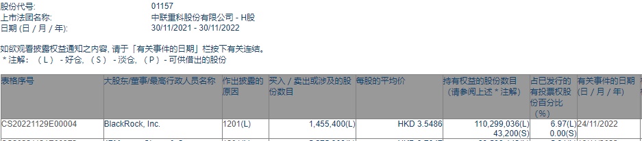 智通财经APP获悉,香港联交所最新资料显示,11月24日,贝莱德减持中联重科(01157)145.54万股,每股作价3.5486港元,总金额约为516.46万港元。减持后最新持股数目约为1.10亿股,最新持股比例为6.97%。