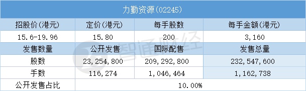 智通财经APP获悉,11月30日,力勤资源(02245)配售结束。配售招股价15.6-19.96港元,最终定价15.8港元,每手3160港元。