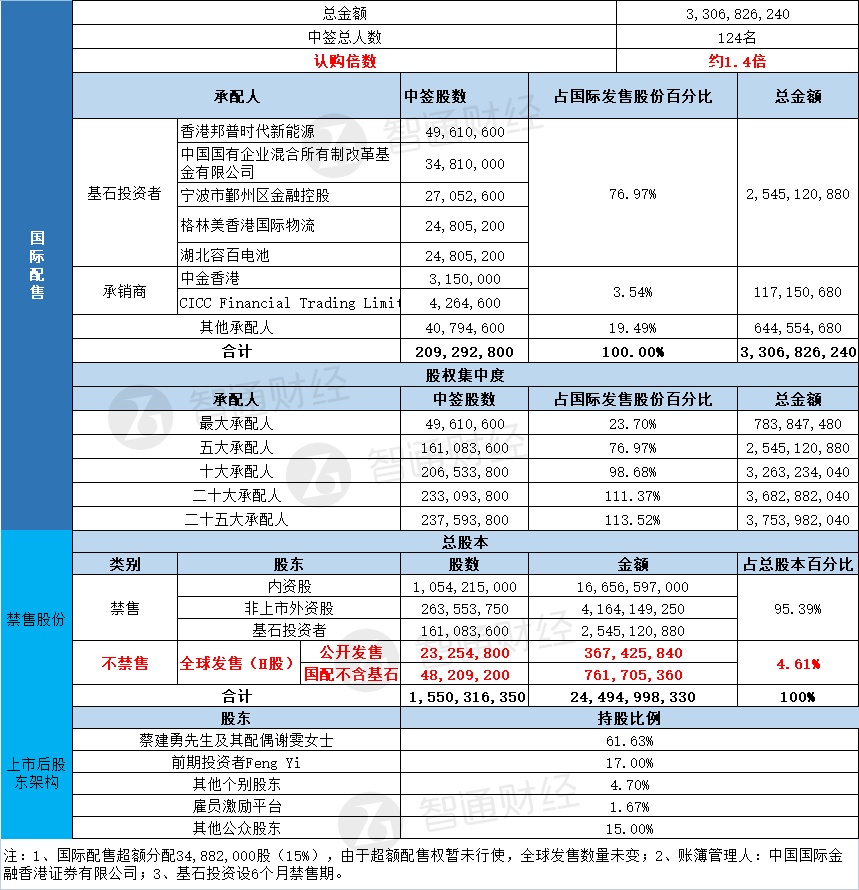 国际配售申购人数未披露,认购倍数约1.4倍。