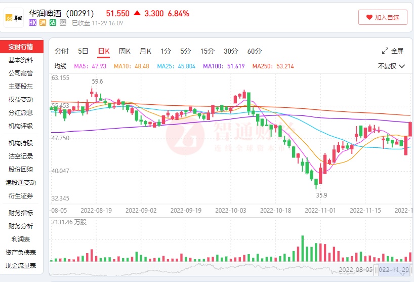在世界杯这场绿茵盛宴背景下,啤酒厂商的一举一动都会更外引人关注。华润啤酒(00291)毫掷123亿加码白酒,再次搅动啤酒江湖。利好接连不断,带动公司股价连续两个交易日涨幅超11%,成交额达11.44亿港元。