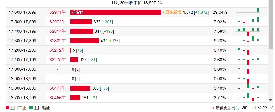 牛证街货重货区在17600-17699区间,该区间最新牛证数量为1372张,较上一交易日增加1372张;最多新增在同一区间。