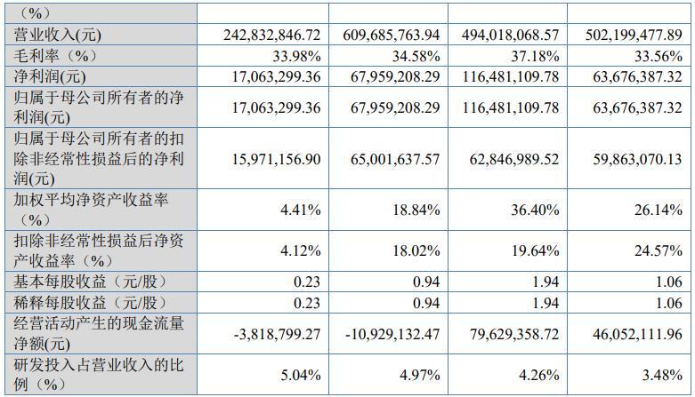 财务方面,于2019年、2020年、2021年及2022年1-6月,公司营业收入分别约为5.02亿元、4.94亿元、6.10亿元及2.43亿元;同期,净利润分别约为6367.64万元、1.16亿元、6795.92万元及1706.32万元。