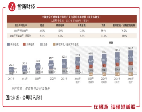 从行业来看,根据弗若斯特沙利文报告,中国数字互动娱乐行业的市场规模以用户支出计,2021年市场规模为5236亿元,近五年复合年增长率为20.0%,预计2026年将达到人民币8092亿元,复合年增长率为9.1%。网络游戏产品占行业最大的板块,按用户支出计,占2021年中国数字互动娱乐行业总量的约60.2%。