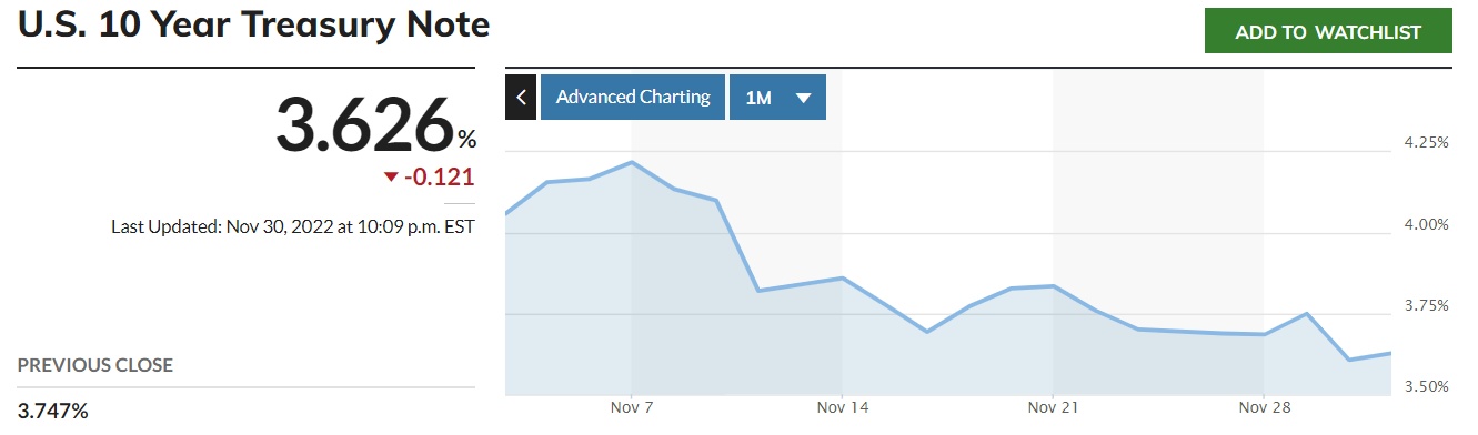 亚洲早盘,美元兑日元一度跌至1美元兑137.27日元,为8月26日以来首次,截至发稿,美元兑日元跌0.95%至136.740美元,仍然处于3个月来的低位。10年期美债收益率截至发稿跌至3.626%。