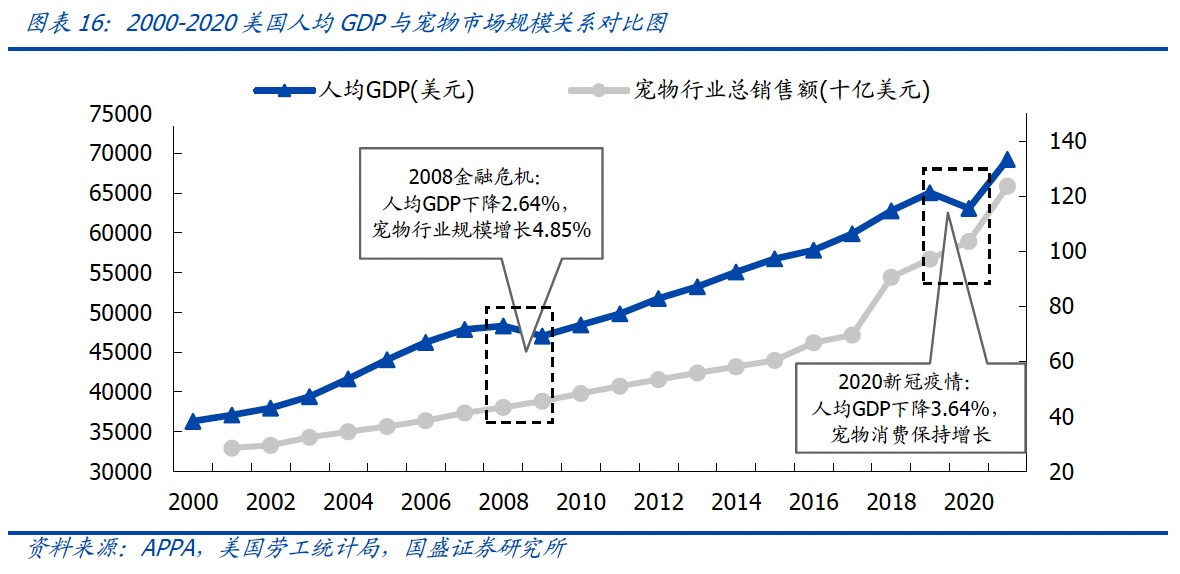 近年来,宏观经济波动加剧、疫情多点散发,外部多重不利因素发酵引发了市场对于消费行业的担忧。但就宠物赛道而言,类似的担忧或许有些不合时宜了。以美国为例,据APPA(美国宠物行业协会)统计,疫情以来美国人领养宠物的意愿不减反增,从2020年的6%提升至2021年的14%,规模亦于2021年达到了1236亿美元。