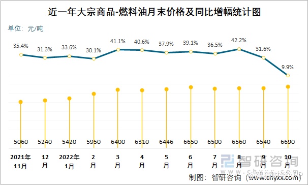 据生意社大宗榜数据统计,2022年10月能源大宗商品燃料油价格为6690元/吨,同比增加9.85%,环比增加2.29%;据市场分析人士认为,尽管油价增速有所放缓,但国际油价不确定性仍存,将限制油价的下行空间。