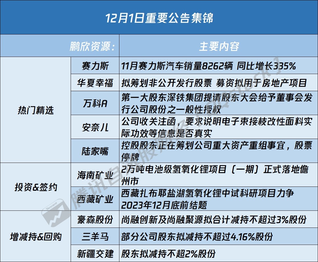 1、赛力斯:11月赛力斯汽车销量8262辆 同比增长335%