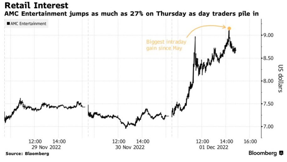 与此同时,该股看涨期权的交易活动是过去20天平均水平的三倍。周五到期的看涨期权,执行价分别为8美元、8.50美元和9美元,是周四AMC交易最活跃的合约。截至纽约时间下午3点,共有超过55万份看涨期权成交,而20天平均值约为16.3万份。