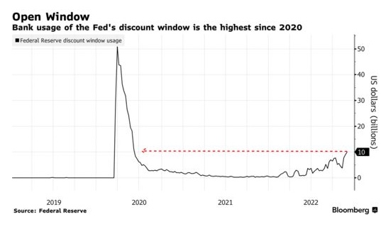 穆迪表示,贴现窗口“通常只被视为最后的手段”,因此额外借款表明,由于美联储自3月以来累计加息3.75个百分点,一些银行已经开始面临更大的短期流动性压力。