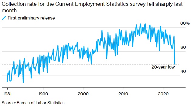 智通财经APP获悉,尽管周五晚公布的美国11月非农数据再次出人意料的强劲,但值得注意的一点是,企业的回复率处于较低水平。初步调查结果显示,企业的回复率在11月降至49.4%,为2002年1月以来最低水平,也是1998年以来最低的11月数据。
