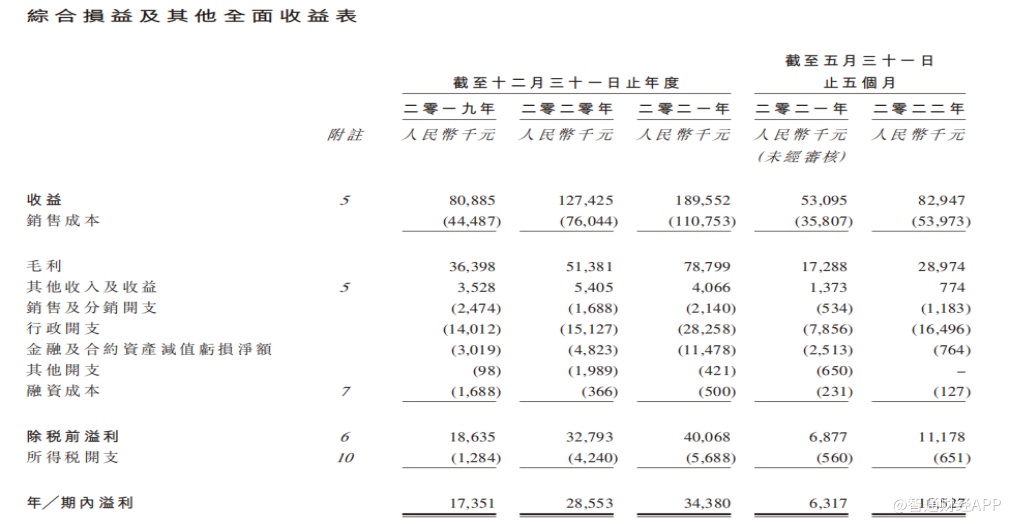 过往业绩期间,濠暻科技实现快速增长。据招股书数据披露,2019年至2021年,公司营收分别为为8088.5万元(人民币,下同)、1.27亿元和1.90亿元,复合年增长率为53.1%;净利润分别为1735.1万元、2855.3万元和3438万元,复合年增长率为40.8%。截至2022年前5月,公司实现营收8294.7万元,同比增长56.2%;净利润1052.7万元,同比增长66.6%。