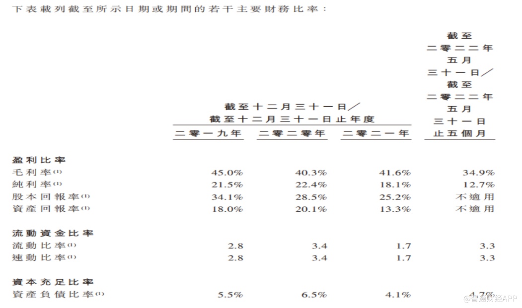 智通财经APP注意到,濠暻科技业绩快速增长的同时,公司盈利能力稳定性表现欠佳。具体而言,公司的毛利率由2019年度的45%下降至2020年度的40.3%,2021年度微增至41.6%。2022年前5个月,毛利率下降至34.9%,同比下滑2.3个百分点。公司净利率则从2019年的21.5%下降至2021年的18.1%,再到2022年前5个月的12.7%。