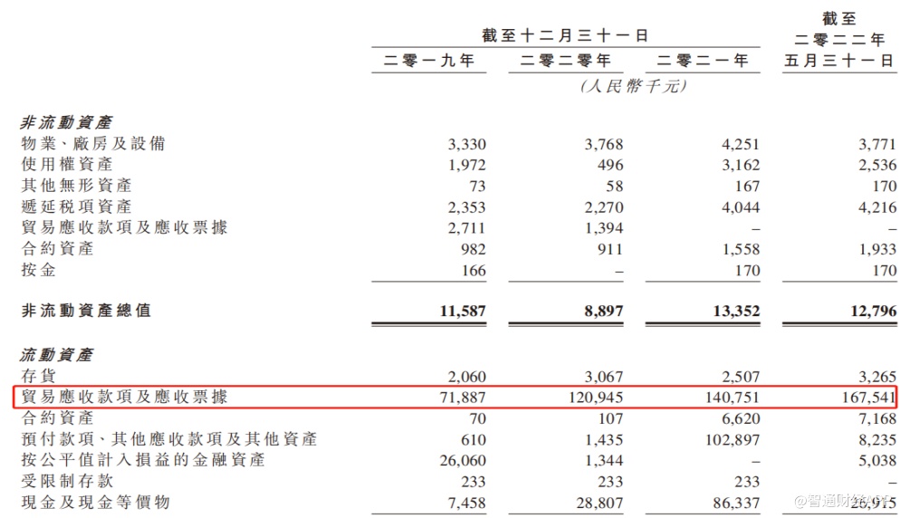 数据显示,2019年至2021年,公司金融及合约资产减值亏损净额分别为301.9万元、482.3万元和1147.8万元,呈快速增长态势。2022年前5个月的金融及合约资产减值亏损净额为76.4万元。公司称,金融及合约资产减值亏损增加,主要由于贸易应收款项金额及账龄增加。