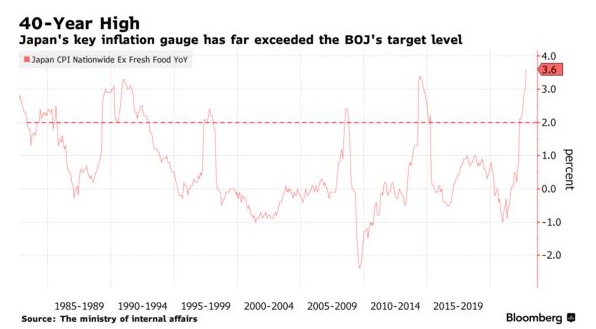 日本的主要通胀指标已远远超过日本央行的目标水平