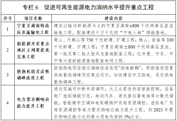 2.推动可再生能源更大范围优化配置。全面落实国家重大战略部署,建成以新能源外送为主的宁夏至湖南±800千伏特高压直流输电工程,全面形成向华北、华东、华中直流送电格局,进一步扩大我区新能源开发和电力外送规模,促进新能源更大范围优化消纳,加快能源资源优势向经济优势转化。
