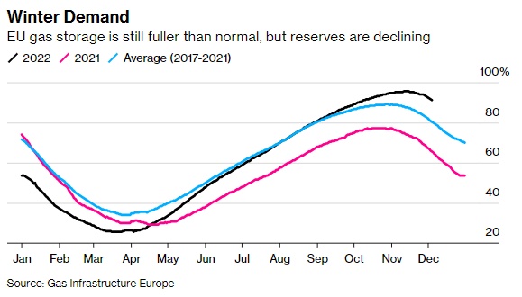 冬季需求量增长——欧盟的天然气储量仍然比正常情况更充足,但处于下降趋势