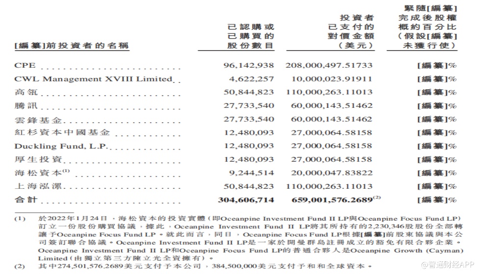 智通财经APP了解到,2021年3月曾进行多轮融资,并没有禁售限制,其中前期投资者包括CPE Investment、CWL Management、高瓴资本、腾讯、云锋基金、红杉资本等。