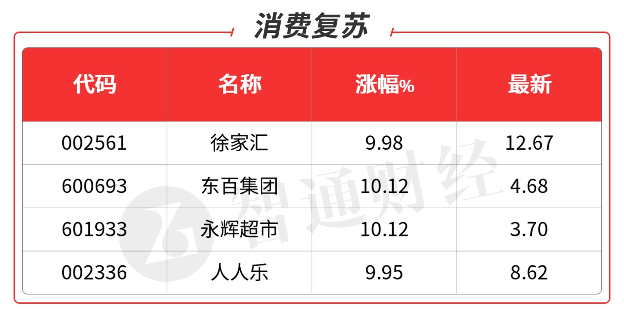 因为市场风向已经转向了疫后重建,第一批炒的是食品饮料囤货,相关品种已经熄火,现在炒的是零售商超题材。北京出了最新优化措施:进入商超、商务楼宇及各类公共场所,可不查验核酸检测阴性证明,扫码进入即可。这应该是全国的风向标。零售类个股被激发,东百集团(600693.SH)率先上板,辨识度高的徐家汇(002561.SZ)尾市被资金抢到涨停。这块的逻辑相对顺畅。另外北京今起餐饮(堂食)须扫码并查验48小时核酸检测阴性证明。餐饮类也值得重视。