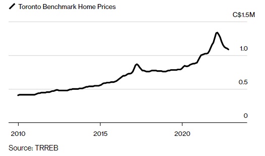 智通财经APP获悉,11月,加拿大多伦多市房价跌幅为今年以来最小,原因是可供出售的房屋数减少,减缓了利率走高初期开始的回调。多伦多地区房地产委员会(Toronto