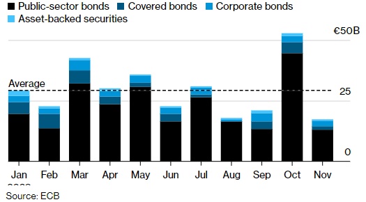 欧洲央行最大投资组合的每月赎回波动