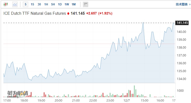 智通财经APP获悉,由于欧洲各地气温低于平均水平,引发了对天然气需求的担忧,欧洲天然气价格持续波动。周三,欧洲基准TTF荷兰天然气期货在涨跌间摇摆,截至发稿,该期货价格小幅上涨1.92%。