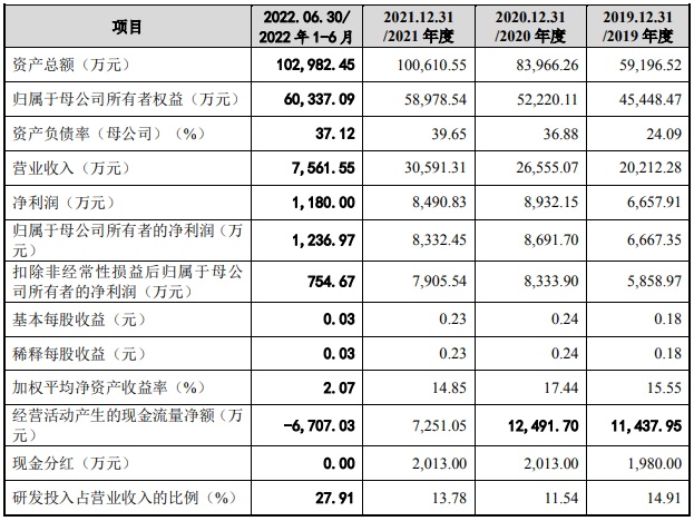 财务方面,于2019年度、2020年度、2021年度,公司实现营业收入约为2.02亿元、2.66亿元、3.06亿元。净利润分别约为6657.91万元、8932.15万元、8490.83万元。