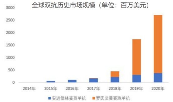 由于双抗具备相比联合用药,副作用更小,耐药性也更好;能够靶向过去不可成药的靶点;与组合疗法中单一抗体的药物开发相比,双抗可以降低开发成本、临床试验、法规审查的预算等优势,因此双抗产品上市后快速增长。