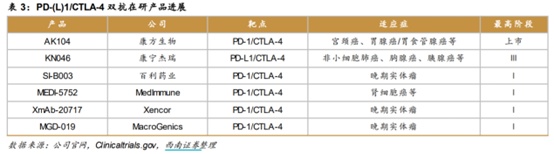由于国内药企在PD-1/L1上出现扎堆的现象,导致在双抗的靶点选择和作用机制上也有明显的扎堆情况产生。