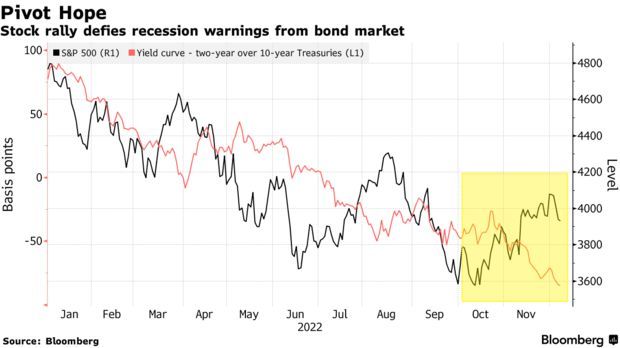 标普500指数自11月中旬以来的涨势与债市走势相悖。美债收益率曲线进一步倒挂,衰退警告愈发强烈。此外,在截至6月份的三个季度中,有两个季度的企业盈利增长预期为负。