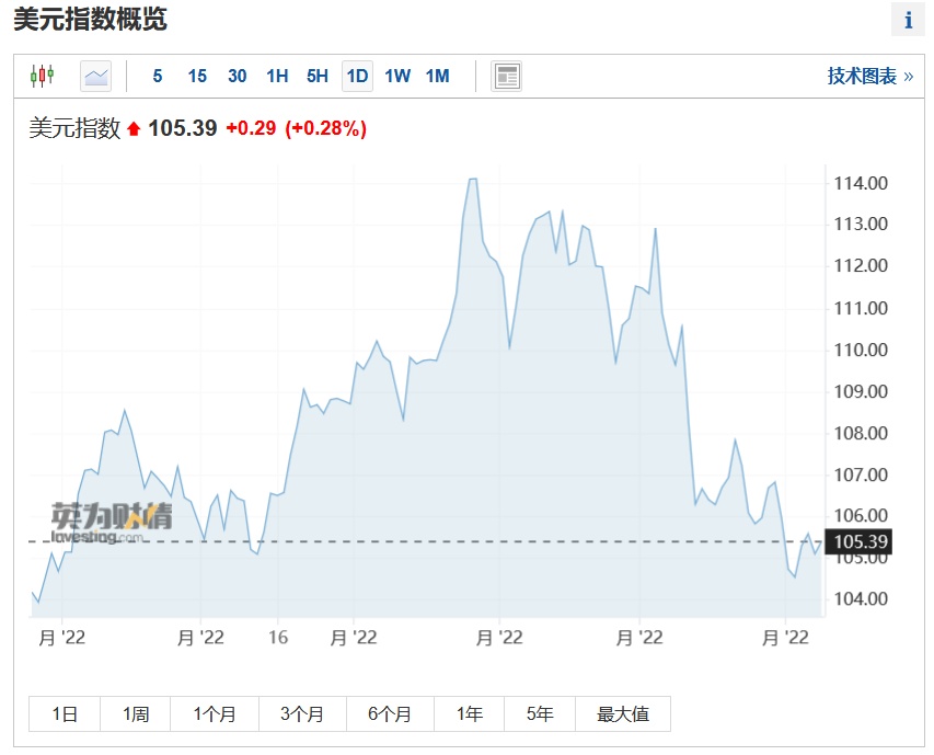 智通财经APP获悉,周三,衡量美元兑六种主要货币的一篮子美元指数(DXY)收跌0.42%,为本周以来首次下跌。市场押注美联储将放缓加息步伐、且可能将利率在更长时间内维持在高水平,这加剧了对利率上升可能将美国经济推向衰退的担忧。截至发稿,美元指数涨0.28%,仍徘徊在105左右。