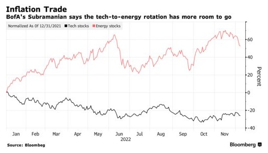 曾在今年年初,当科技股遭遇抛售,能源股反弹时,美国银行策略师Savita