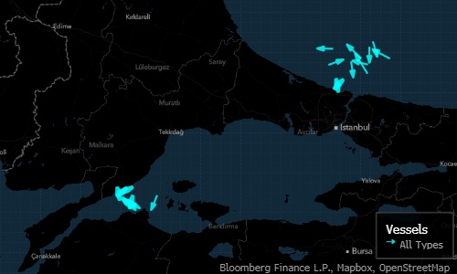 智通财经APP获悉,由于多方谈判未能就欧盟对俄罗斯原油制裁导致的保险问题找到最终解决方案,滞留在有“天下咽喉“之称的土耳其海峡的油轮数量继续增加。统计平台汇编的航运数据显示,截至周三,来自哈萨克斯坦的26艘载有2300多万桶原油的油轮无法通过属于土耳其海峡范围的博斯普鲁斯海峡和达达尼尔海峡,这些航道是黑海原油和其他大宗商品运输的重要咽喉。