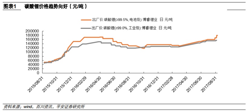 目前电池级碳酸锂市场价格已经达到16.6万元/吨左右,较过去3个月涨幅接近20%,个别碳酸锂企业甚至报价17万元/吨依然供不应求。受下半年新能源汽车市场的全面回暖以及环保稽查等多重因素影响,碳酸锂价格趋势仍然向好。