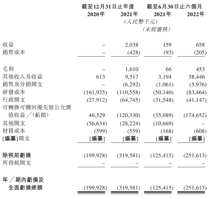 值得注意的是,该公司的业务及财务前景很大程度上取决于其临床阶段及临床前阶段药物能否成功。若该公司未能就候选产品成功完成临床开发、未能获得相关监管批准或实现商业化,该公司的业务、经营业绩及财务状况可能会受到重大的不利影响。于2021年度、2022年上半年,该公司分别亏损3.2亿元、2.52亿元人民币。