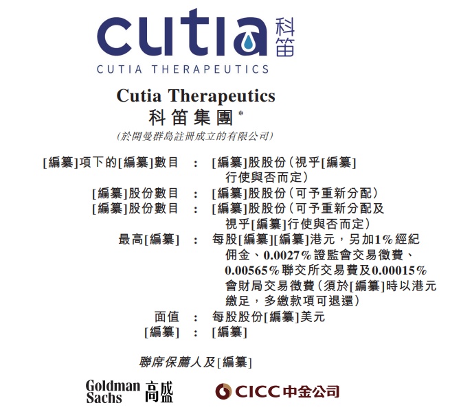 智通财经APP获悉,据港交所12月8日披露,Cutia Therapeutics (科笛集团) 向港交所主板提交上市申请,高盛与中金为其联席保荐人。