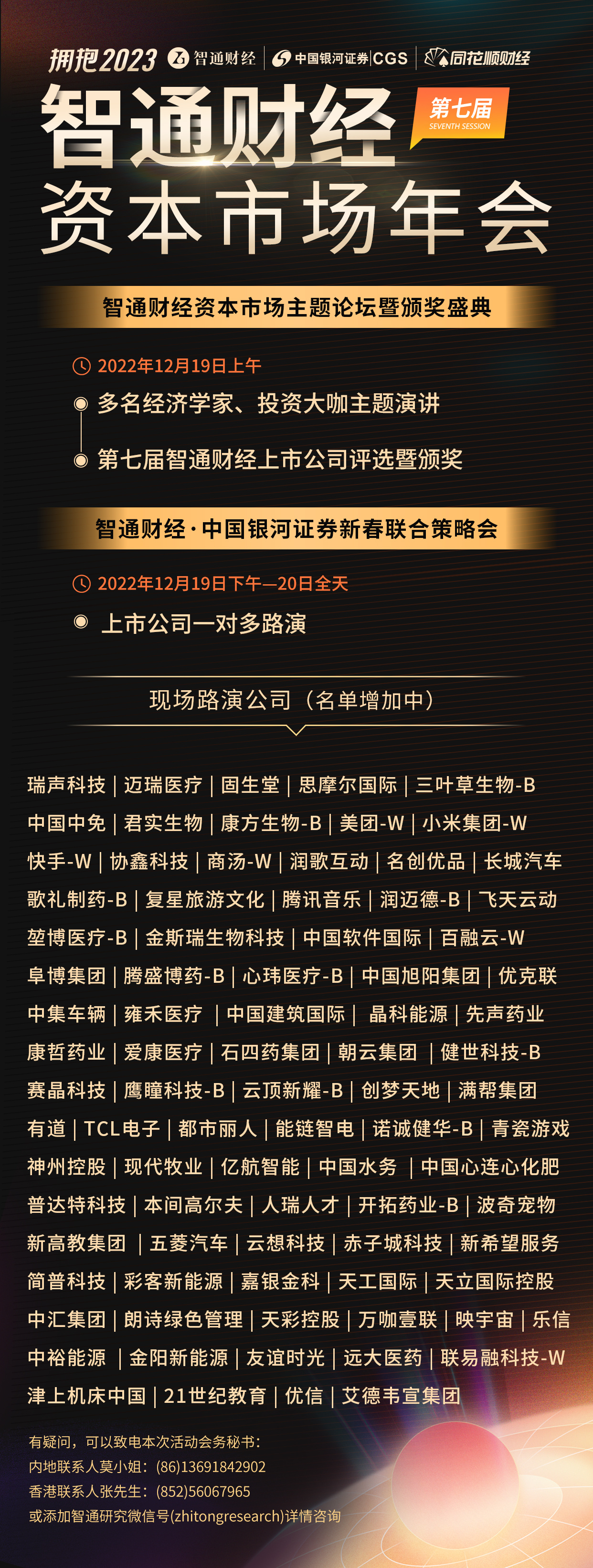 基于此背景,由国内领先的港美股资讯平台智通财经与中国银河证券、同花顺财经共同主办主题为“拥抱2023·第七届智通财经资本市场年会”将于2022年12月19-20日在长江三角洲中心城市之一的杭州启幕!
