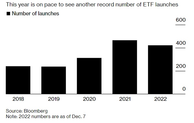 智通财经APP获悉,截至周三,美国推出了422只新ETF,比2021年同期多5只,有望继2021年之后再次创下ETF发行记录。这表明,破坏性的熊市、通胀引发的波动和资金流入减少并未使蓬勃发展的美国ETF行业降温。