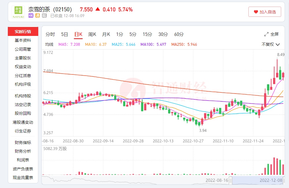 截至最新收盘,其股价仅7港元出头,已经距离上市当天股价最高点18.98港元“腰斩”过半,上市至今累跌超63%。作为被寄予厚望的“新式茶饮第一股”,奈雪如此表现的确是有点“拉垮”了。