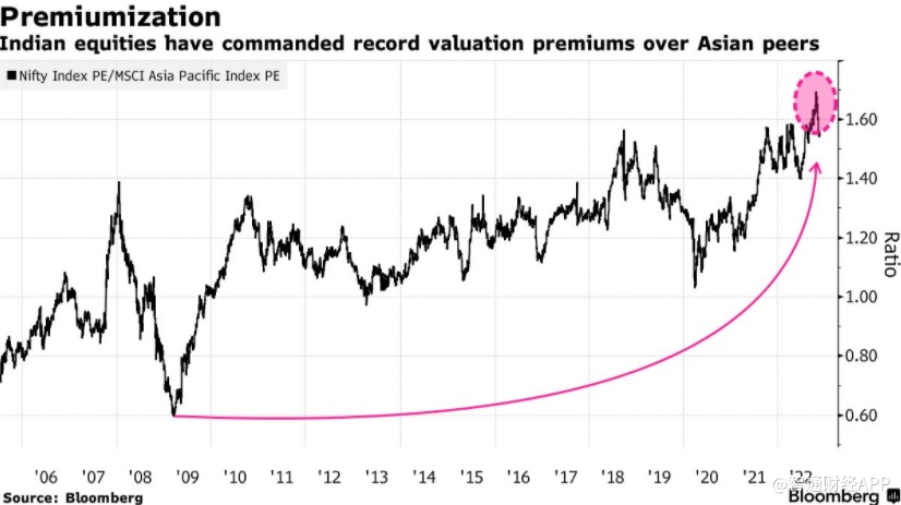 尽管印度股市今年表现突出,NSE Nifty 50指数涨幅超过7%,而全球股市则下跌了18%,但其估值仍是亚洲最高的。高盛策略师表示,这意味着印度股市明年的表现可能会落后于中国和韩国。