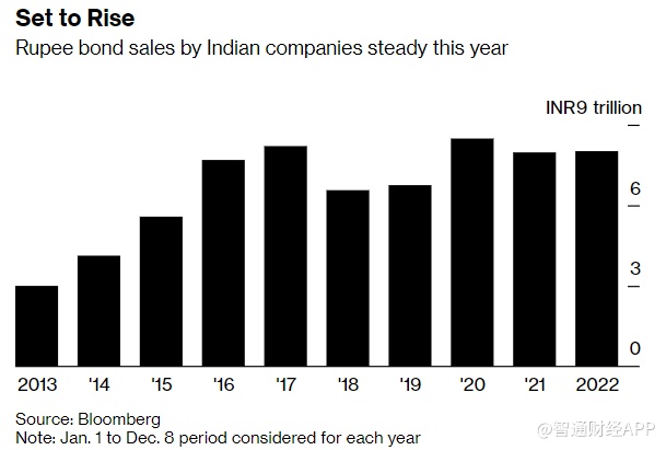 随着发行方从银行贷款转向票据,印度公司以卢比计价的债券销售将于明年复苏。数据显示,今年迄今,印度公司已经出售了大约8万亿卢比(971亿美元)的国内债券,与去年同期相比变化不大。