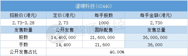 智通财经APP获悉,12月9日,濠暻科技(02440)配售结束。配售招股价2.73-3.28港元,最终定价2.73港元,每手2730港元。